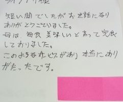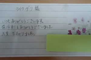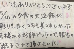ライフデリ川越・富士見店に長期間ご利用頂きましたお客様から感謝のお手紙を頂戴しました。多種多様な栄養バランスを考慮された献立やスタッフへ労いの言葉まことにありがとうございます。