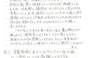 ライフデリ松本店への感謝のお手紙を紹介します。
