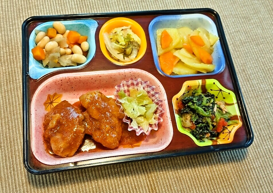 メニュー情報2021.10.22 LIFEDELIK 今月のおすすめメニュー♪ ~甘辛チキン~ 今回ご紹介するメニューは「甘辛チキン」です。 スパイシーな味つけがアクセントのメニューです。 辛味を好む方は是非ご注文下さい。 10/25(月)昼食 提供予定です。 ※写真はイメージです。 (一部提供日が異なる店舗がございます。) ライフデリでは、配達日の前日18時まで ご注文を承っております(^o^) ご試食は幼稚園や保育所へのお弁当も承っておりますので、 お気軽に配達地域の店舗までお問い合わせください☆