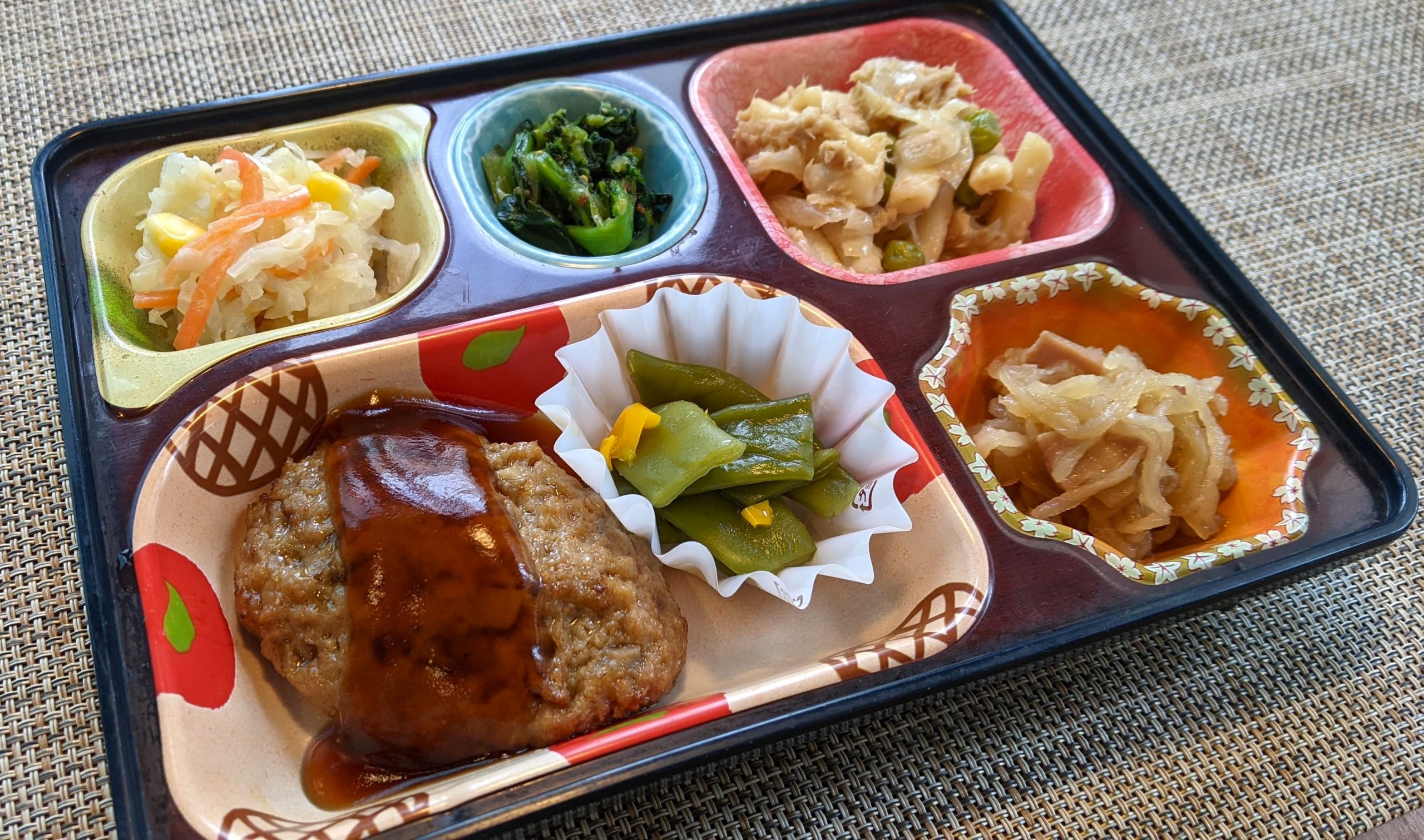 ふっくらとやわらかく焼き上げたハンバーグに、人参やごぼうなどの根菜を加えることで、食べやすさと栄養バランスの両方を兼ね備えた一品に仕上がっております。
