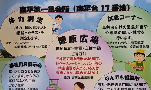 ライフデリ川崎本店が南平台健康福祉まつりに参加させて頂き、試食ブースを展示させていただきました。 地域の介護サービス(介護予防対応教室、福祉用具の展示、高齢者疑似体験、健康チェツク、健康相談、試食、試飲等)を比較検討頂け…
