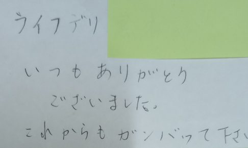 ライフデリ横浜川崎店へのお手紙をご紹介します。 「これからも頑張ってください。と応援していただける内容のお手紙でした。」とのことです。 お母様が施設に入所になったのでお弁当は終了になったのですが、最後にお手紙をいただきま…