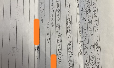 ライフデリ目黒店へのお手紙をご紹介します。 「敬老の日にお出しした小豆ご飯(お赤飯)と甘味物への感謝のお手紙です。」とのことです。 ご本人様が想像もしていなかった小豆ご飯や甘味物を提供し頂いたお礼のお手紙です。 95歳の…