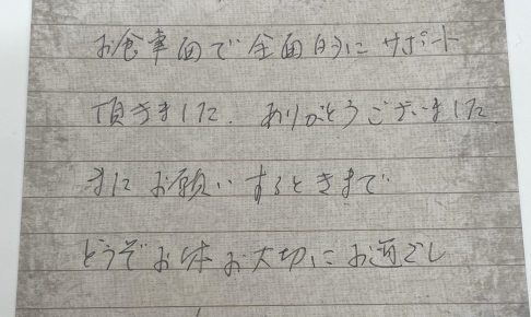 ライフデリ小郡店へのお手紙をご紹介します。 「おごちそうさまでした。 おいしく頂きました 有難うございました」とのことです。 ご家族から、お父様へご試食のご依頼があったときのお手紙です。 この後週数回ほど定期でご注文を頂…