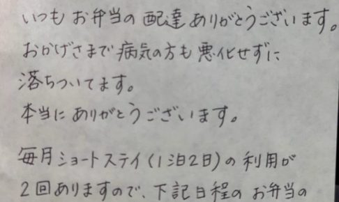 ライフデリ伊勢店へのお手紙をご紹介します。 「いつもお弁当の配達ありがとうございます。 おかげさまで病気の方も悪化せずに落ちついています。 本当にありがとうございます。」とのことです。 腎臓食をご注文頂いているお客様です…