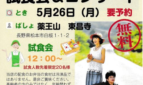 ライフデリ松本店を運営する雅音人が松本市白板にある曹洞宗のお寺『薬王山 東昌寺』にて、ライフデリの試食会と雅音人コンサートを開催しました。 このイベントは、松本市の新聞「MGプレス」への掲載、お寺からのチラシ配布、そして…