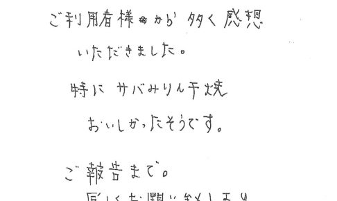 ライフデリさいたまサテライト店へのお手紙をご紹介します。 「当店の周年記念で配達時にご挨拶をしておりました。 ご利用の感謝しているきもちでしたが逆に励ましのお言葉を頂きました。」とのことです。 最近にご利用いただくように…