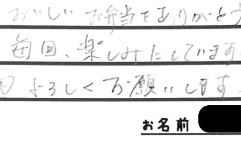 ライフデリ彦根店へのお手紙をご紹介します。 「お休みが無いので助かります。 いつもありがとう。」とのことです。 他社のお弁当をご利用頂いているお客様です。 土日祝日など、他社のお弁当がお休みの際にご利用頂いております。 …