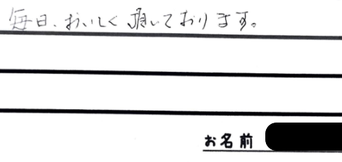 ライフデリ彦根店へのお手紙をご紹介します。 「いつもありがとうございます。 美味しく頂いてます。」とのことです。 先月よりお届けさせて頂いているお客様です。 配達エリアと隣の自治体との境界線近く、山裾の方にお住いのお客様…