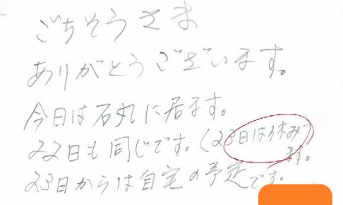 ライフデリ福岡西店へのお手紙をご紹介します。 「ごちそうさま ありがとうございます。というお手紙を頂戴致しました。」とのことです。 ご利用者様が住んでいる地域と、お嬢様が住んでいる地域に行き来をされている方よりお手紙をい…