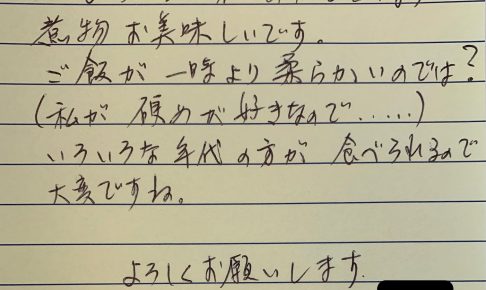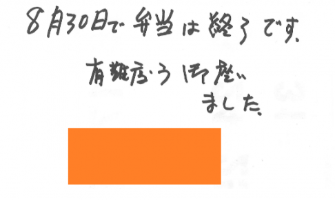 ライフデリ前橋店へのお手紙をご紹介します。 「お弁当の終了日にお弁当箱とともに添付されており、御礼のお手紙を頂戴いたしました。」とのことです。 奥様の入院をきっかけに配食スタートされたお客様、3カ月ほどして奥様は退院、2…