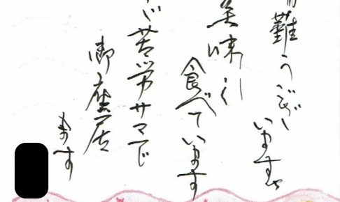 ライフデリ宮崎店へのお手紙をご紹介します。 「「有り難うございます。美味しく食べていますよ。ご苦労さまで御座います」というお手紙を頂戴しました」とのことです。 先月よりホームページ経由でご利用をいただいているお客様です。…