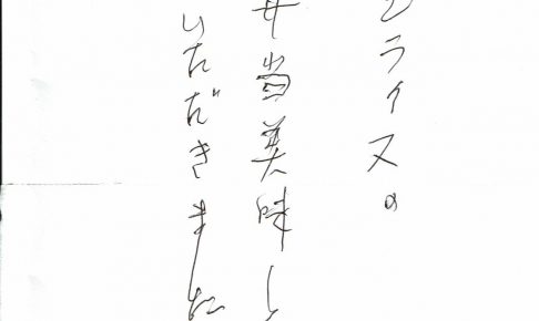 ライフデリ中野店へのお手紙をご紹介します。 「ハヤシライスおいしかった。 またお願いします。」とのことです。 1日2食、週7日お届けしている利用者様です。毎日会話はしておりますが、お手紙を珍しく頂きました。ありがとうござ…