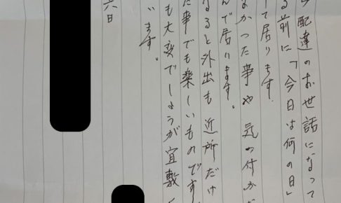 ライフデリ川越・富士見店へのお手紙をご紹介します。 「いつも配達をありがとうございます。おかげ様で受け取る時間帯に起きるようになりました。お弁当、毎日楽しみな様子です。美味しいと言っています・・・いつもありがとうございま…