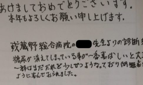 ライフデリ川越・富士見店へのお手紙をご紹介します。 「・・・診断結果です。糖尿が消えてしまっている事が一番喜ばしいと大喜びでした。一部はまだだけど少しづつ良くなっており問題無いと自分のことのように喜んでおられました。」と…
