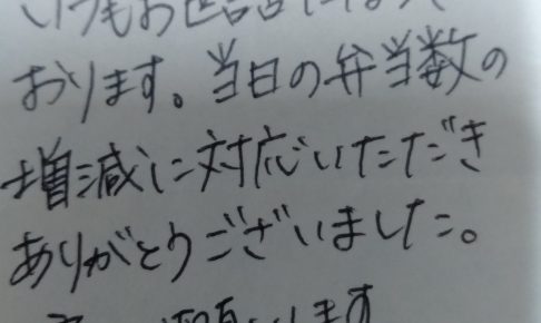 ライフデリ横浜鶴見・中店へのお手紙をご紹介します。 「デイサービスのセンター長様から突然の食数変更(増加)に対して対応したことについてのお礼のお手紙をいただきました。」とのことです。 デイサービスのセンター長様から、突然…