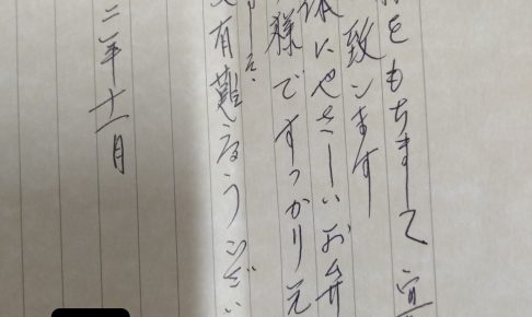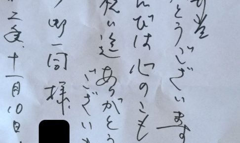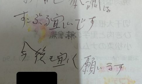 ライフデリ横浜鶴見・中店へのお手紙をご紹介します。 「新規のお客様から、周りの助けをもらって、もう少し頑張れるかなと思っており、素敵なご縁がありますようにとのことでした。」とのことです。 ご主人が4年前に亡くなったそうな…