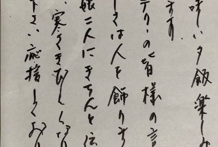 ライフデリ市川店へのお手紙をご紹介します。 「大変美味しい夕飯、楽しみにしております。又、ライフデリの皆様の言葉使いや礼儀正しさは人を飾ります、私も孫娘2人にきちんと伝えたいと思います。寒さ厳しくなります頑張って下さい。…