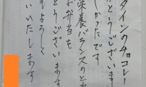 ライフデリ所沢店へのお手紙をご紹介します。 「バレンタインのチョコありがとうございました。 うれしかったです。 いつも栄養バランスのとれた美味しいお弁当をありがとうございます。 今後ともよろしくお願いいたします。」とのこ…